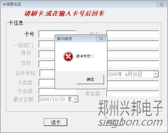 [文章内容简介]:在读卡器上读卡时,操作错误提示:读卡失败!
