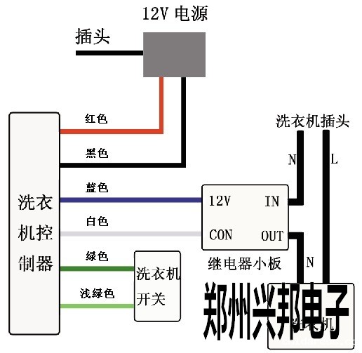 如果继电器小板上有二极管,洗衣机控制上的白线接继电器小板上二极管有白端的一端。