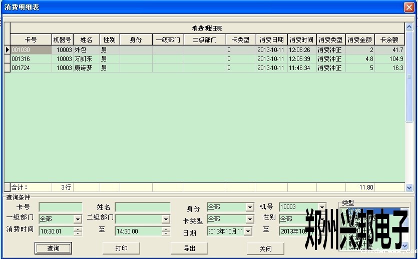 485售饭机软件中消费流水汇总中查看显示负值,如下图所示