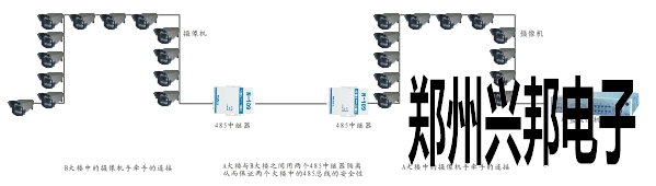 施工方采用485中继器解决上述问题。在A,B教学楼里面各放一个485中继器,等于把一个485网络分成了3个485网络,这样485网络就可以很稳定的运行。再由于教学楼之间的200m的距离是在两个485中继器中间,即使有强电干扰,由于485中继器中防雷保护和光隔离功能,也会被其所吸收,隔离。从而保证了485网络的稳定性及安全性。