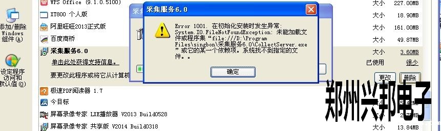 在卸载采集服务的时候,出现了Error:1001.在初始化安装时发生异常,未能加载文件或程序集
