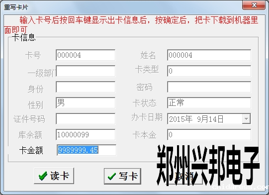 局域网平台一卡通软件中,卡类操作中有一个重写卡片的操作,如下图所示: